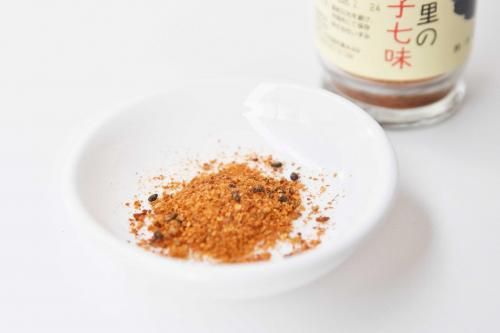 柚子皮の他に、陳皮、胡麻、麻の実、のり、山椒、けしの実、唐辛子を使用。