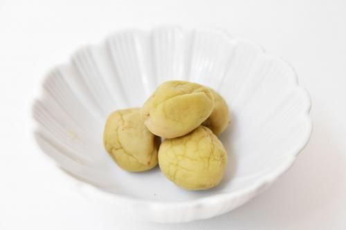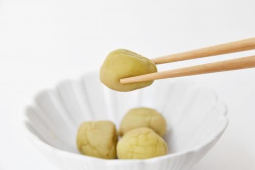 梅、塩を主原料とし、白干し梅ならではの強い酸味と塩味をまろやかにするために氷砂糖を、添加物を使わずに保存性を高めるために穀物酢を加えています。